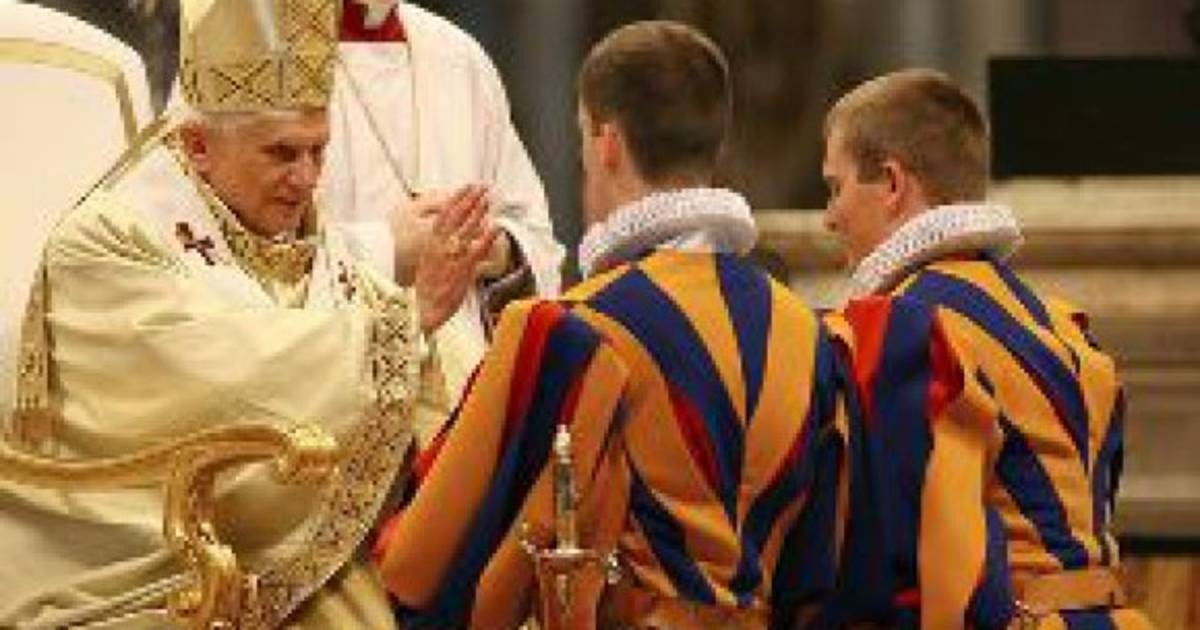 El papa Benedicto XVI agradeció hoy sábado a la Guardia Suiza por sus 500 años de servicio de protección al Vaticano, y encomió la dedicación del grupo, al considerarlo un ejemplo para todos los jóvenes que desean servir a la Iglesia.