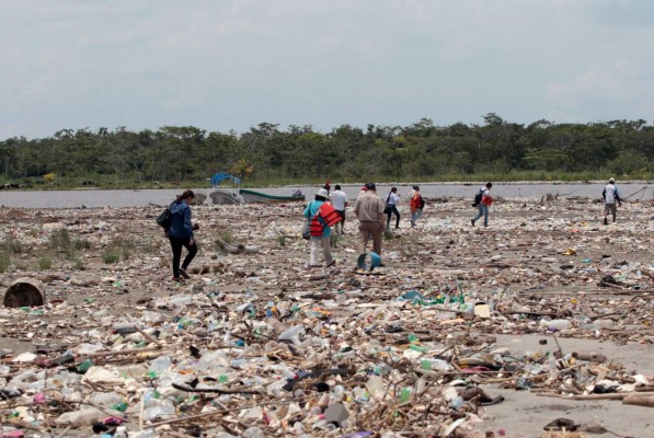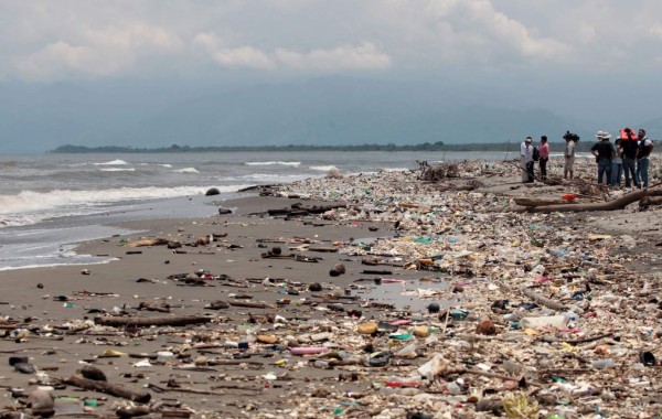 La basura de Guatemala inunda playas de Omoa y Puerto Cortés desde hace varios años.