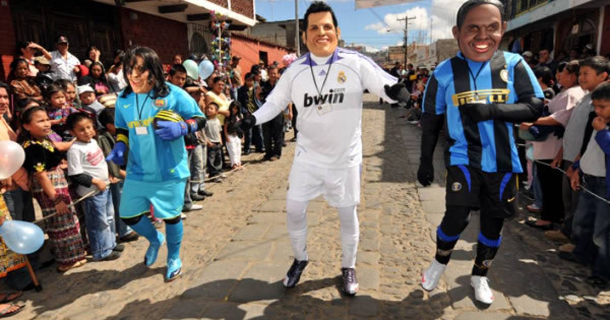 Los habitantes de la población indígena guatemalteca de Sumpango se vistieron hoy de Michael Jackson, Cristiano Ronaldo, Messi o Eto'o en el vigésimo noveno desfile de disfraces del Club Saturno, con el que se despiden del año 2009.