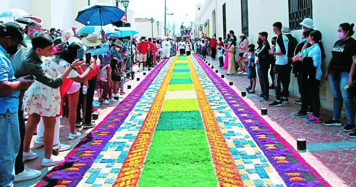 Las coloridas alfombras son uno de los principales atractivos turísticos religiosos, una idea que surgió hace 60 años por parte de Mirian Zapata, quien elaboró el primer diseño en la catedral en 1963.