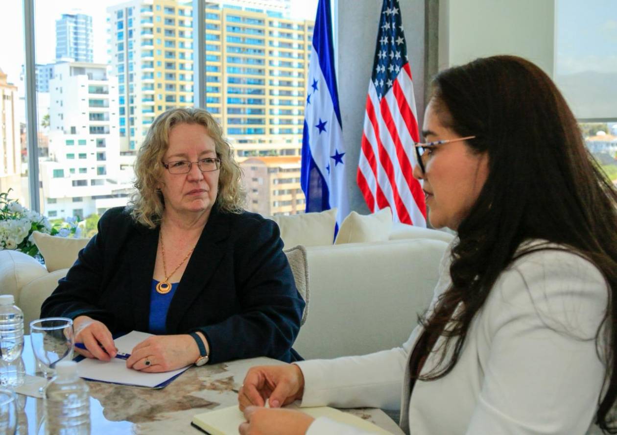 La designada presidencial Diana Baleska Herrera, quien también coordina el Plan Trifinio, sostuvo este martes un encuentro de trabajo con la encargada de Negocios de la embajada de Estados Unidos en Tegucigalpa, Colleen A. Hoey, para abordar una agenda enfocada en el fortalecimiento del crecimiento económico y la relación bilateral entre ambas naciones.