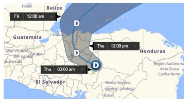 Se pronostica que ETA continúe su desplazamiento por los departamentos de Francisco Morazán y Comayagua en el transcurso de la mañana de hoy jueves, saliendo del país por el departamento de Cortés en horas de la tarde, hasta llegar al Golfo de Honduras en las primeras horas de la noche.