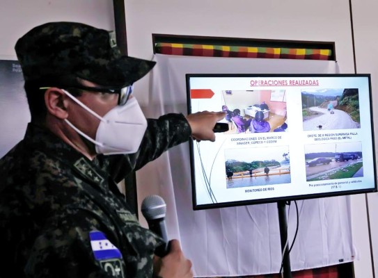 Durante la reunión, el mandatario conoció sobre los trabajos de apoyo en entrega de asistencia humanitaria, el recuento de daños y la habilitación de pasos en Gracias, además de las labores de rescate que realiza la Fuerzas Aérea de Honduras.