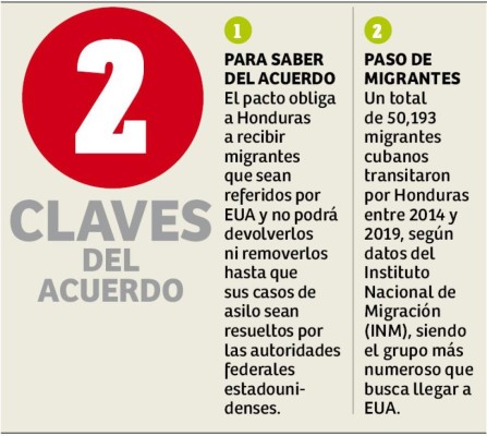 Como parte del acuerdo de Cooperación en Materia de Asilo (ACA) o de tercer país seguro, suscrito con Estados Unidos, Honduras acogerá a migrantes de Guatemala, El Salvador, México, Brasil y Nicaragua, mientras las autoridades migratorias estadounidenses resuelven sus solicitudes de asilo o refugio.