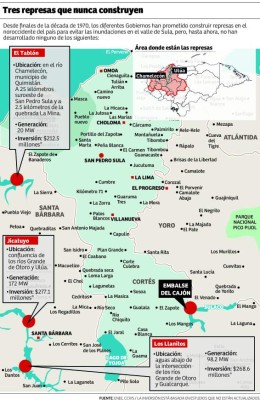 La represa El Tablón, particularmente, es un proyecto que los Gobiernos lo han postergardo desde finales de la década de 1970, pero hasta en 2007 tomó una ruta aparentemente definitiva cuando el Congreso Nacional aprobó, por medio del decreto 90-2007, un contrato de consultoría suscrito entre la Comisión Ejecutiva para el Desarrollo Integral del Valle de Sula (Cevs) y la consultora canadiense SNC-Lavalin International Inc., para revisar y actualizar el estudio de factibilidad diseño detallado de ingeniería para la presa El Tablón, documentos y diseño de licitación y documento de licitación para su concesionamiento.