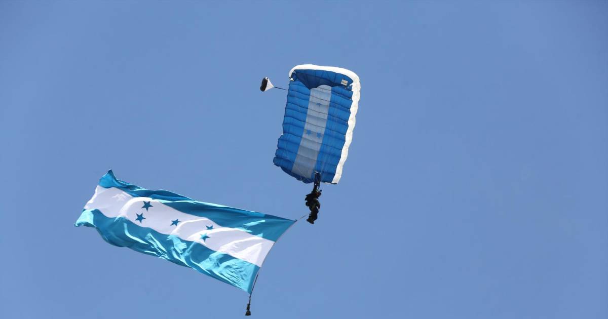 Quince paracaidístas cumplieron con su misión de caída libre en el Estadio Nacional de Tegucigalpa en celebración a los 203 años de independencia de Honduras.