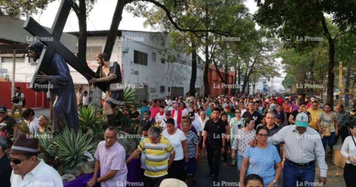 Monseñor Ángel Garachana encabeza el recorrido del viacrucis en San Pedro Sula.