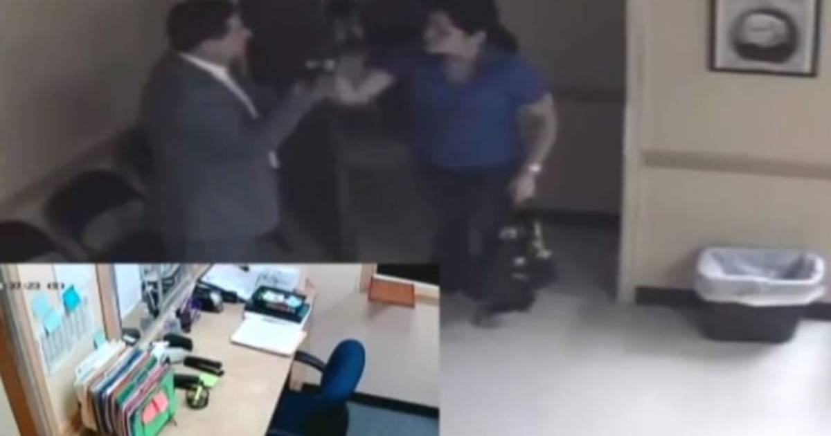 En las imágenes se aprecia cómo la dama agrede al agente consular empujándolo.