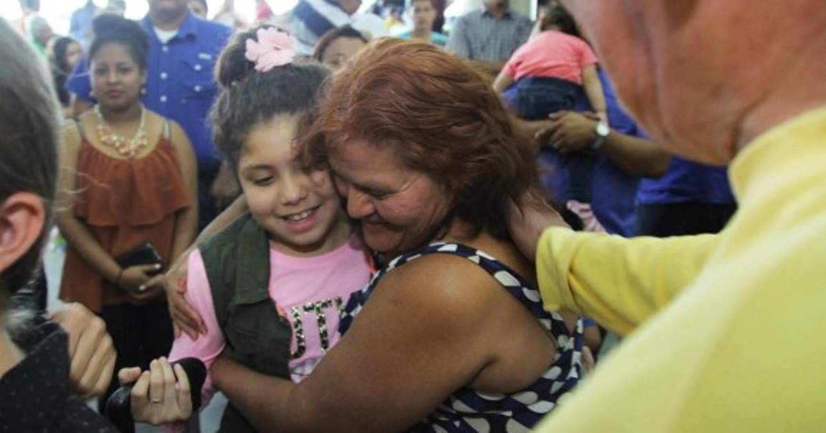 “La conocía solo por foto y casi no le entendía lo que me decía porque ella no habla muy bien el español”, comentaba doña María Celina mientras esperaba impaciente a la pequeña con un letrero que decía: Te amamos Walkiria.