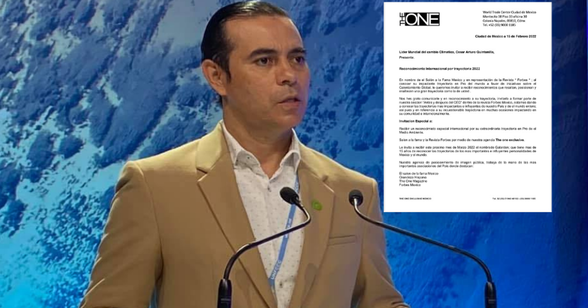 El Salón a la Fama México y en representación de la revista Forbes, otorgará un reconocimiento internacional al hondureño César Quintanilla por su trayectoria como Líder Mundial del Cambio Climático.