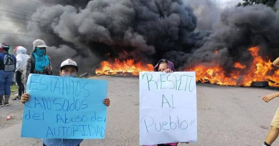 “Entran a las casas y se roban las cosas”, “respeto al pueblo” y “operativos con violencia” eran algunos de los mensajes escritos en las pancartas de protesta.