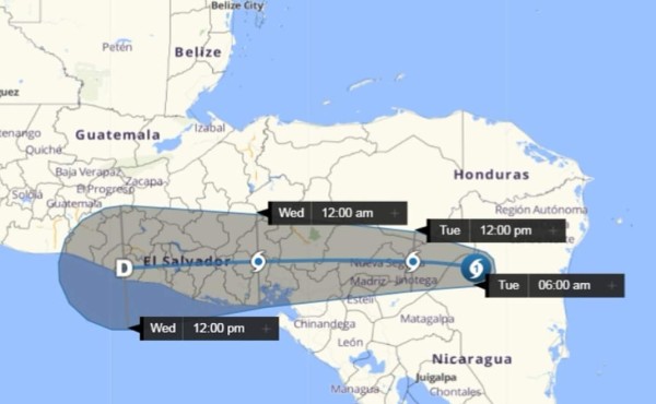 Continuará en proceso de debilitamiento, se espera que transite desde Siuna hacia San José de Bocay y Willilí de Jinotega, en Nicaragua, como probable tormenta tropical, para luego salir a Honduras.