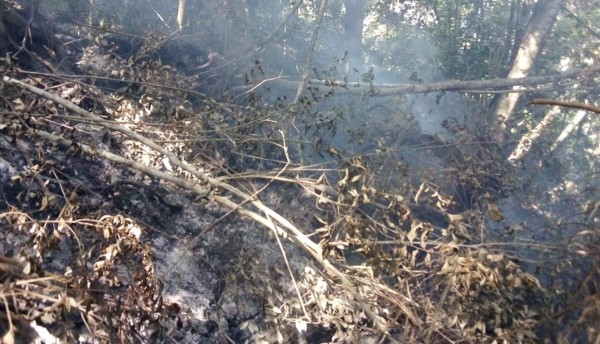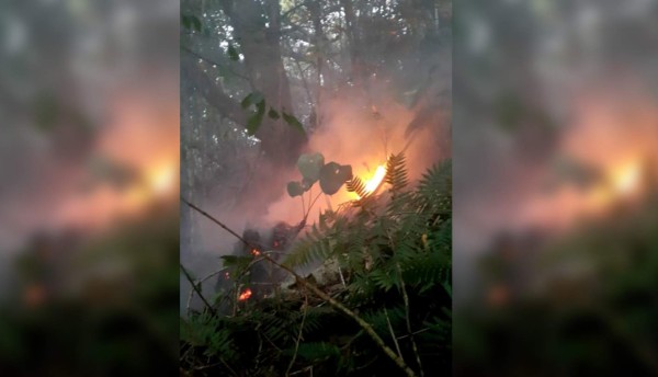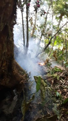 Los integrantes de la expedición que se adentró al cerro Los Honitos, del Parque Nacional Pico Bonito, informaron que la emanación de humo blanco fue provocada por un incendio.