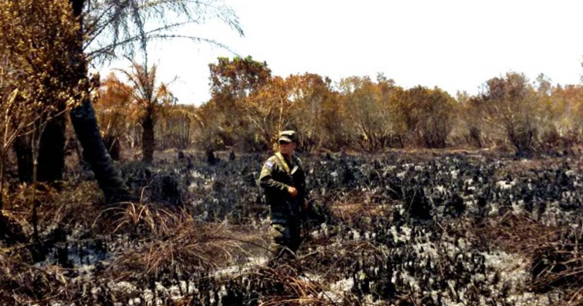 Los miembros del Cuerpo de Bomberos y los militares del Cuarto Batallón de Infantería llevan cinco días lidiando con el fuego que aseguran fue provocado para la siembra de palma africana.