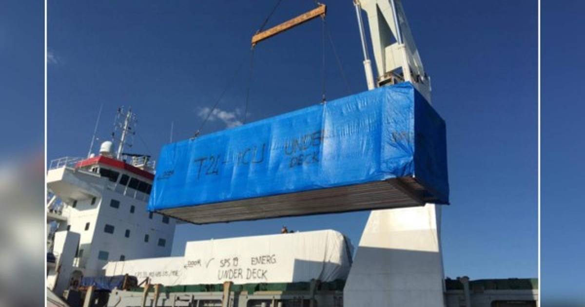 Invest-H compartió esta fotografía de los contenedores que traen los dos hospitales móviles.