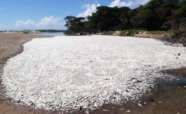 Una alarmante mortandad de peces, tortugas y otro tipo de animales silvestres aparecieron ayer en la barra del río Aguán, municipio de Santa Rosa de Aguán, en Colón.