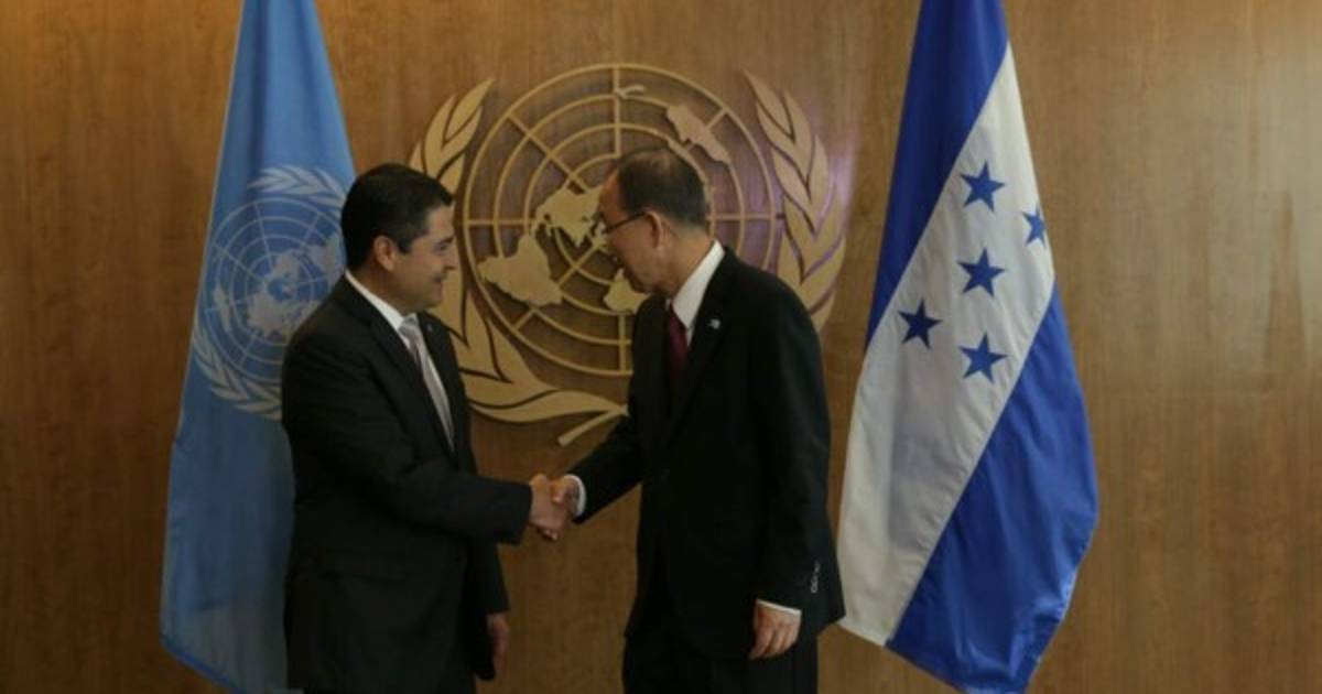 El cambio climático, el Plan Alianza la Prosperidad del Triángulo Norte de Centroamérica y el Diálogo Nacional que promueve Honduras fueron algunos de los temas que platicaron el presidente hondureño Juan Orlando Hernández y el secretario general de la Organización de las Naciones Unidas, Ban Ki-moon.