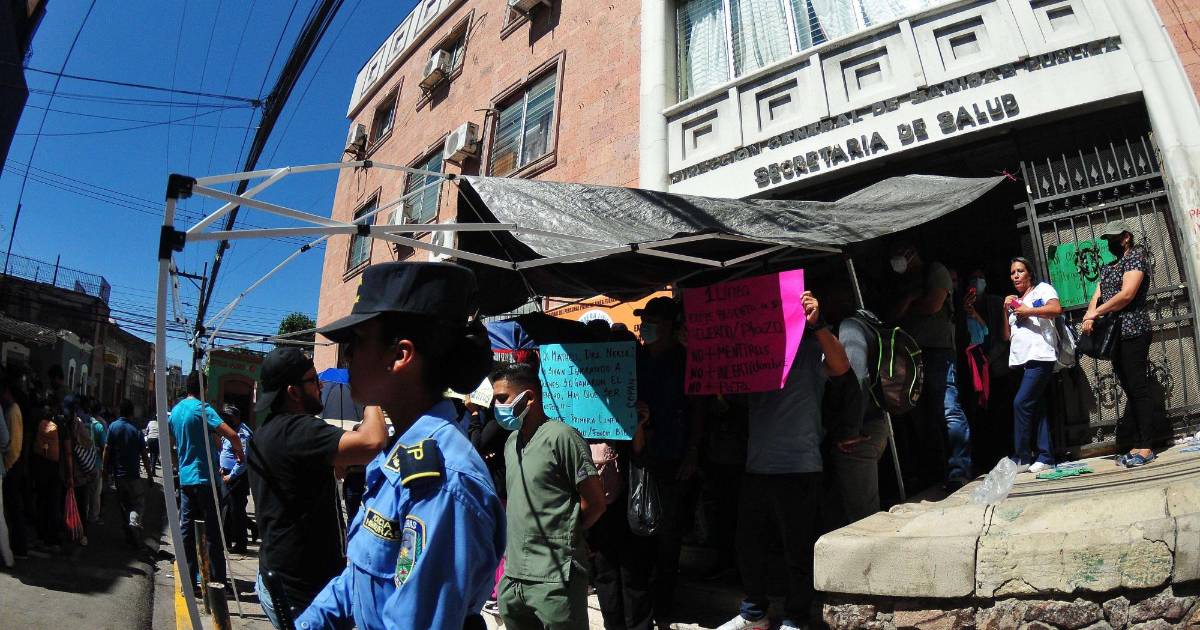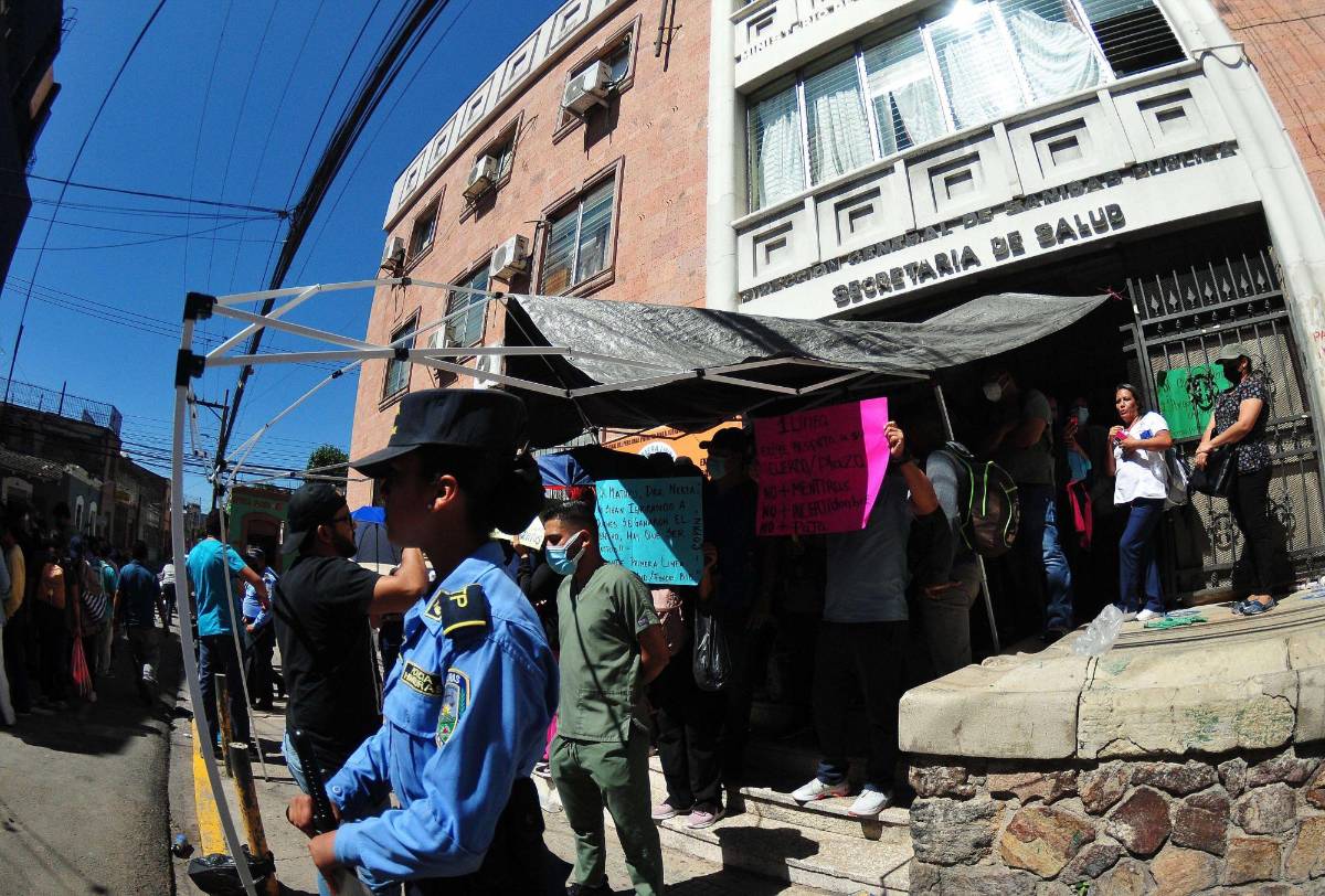En Tegucigalpa, al menos 1,200 médicos y enfermeras que trabajaron en hospitales y centros de salud ocuparon las instalaciones de la Secretaría de Salud para exigir una plaza de trabajo.