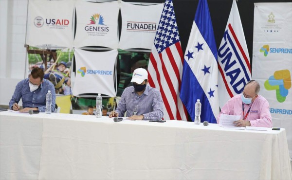 El Servicio Nacional de Emprendimiento y Pequeños Negocios (Senprende) y la Fundación Nacional para el Desarrollo de Honduras (Funadeh), a través del Proyecto Génesis, firmaron ayer un convenio de cooperación que beneficiará a 300 jóvenes emprendedores a nivel nacional.