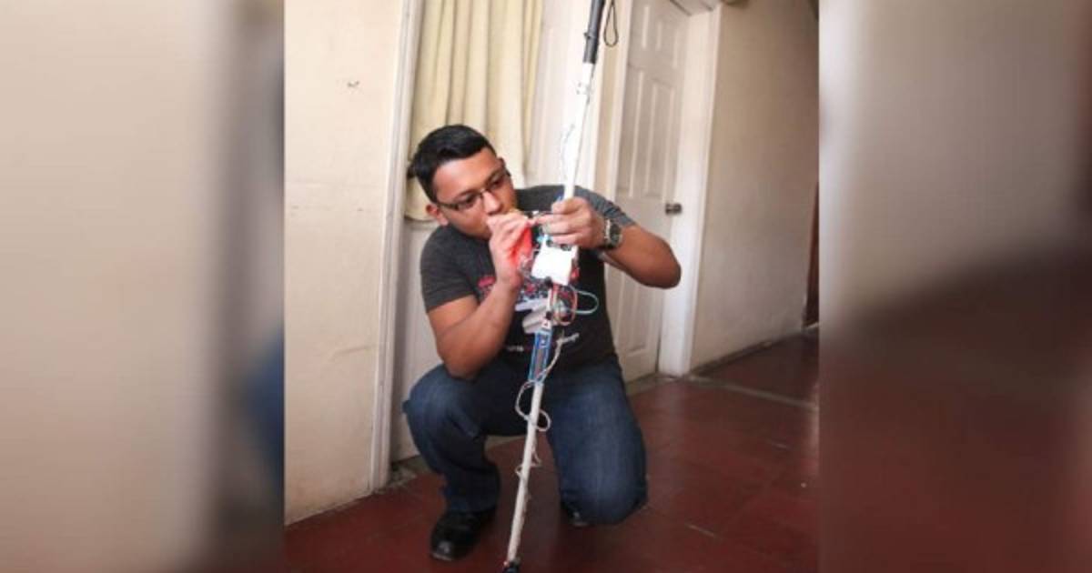 Kenny Orellana, estudiante de la carrera de Matemáticas y pasante de Ingeniería en Sistemas, es el creador del bastón con lentes especiales. Con este proyecto, Kenny ganó el Premio de Innovaciones Tecnológicas.