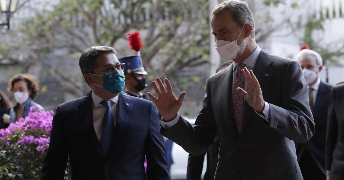 “Un placer recibir a su Majestad el Rey de España, Felipe VI, un gran amigo de Honduras que nos apoyó durante toda mi gestión”, dijo el mandatario hondureño, quien mañana cumple su mandato presidencial tras ocho años en el poder.