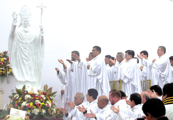 “Juan Pablo II, te quiere todo el mundo”, gritaron centenares de fieles católicos que ayer a las 11.00 am se congregaron en el Santuario de Suyapa para celebrar la beatificación del “Papa Amigo”.