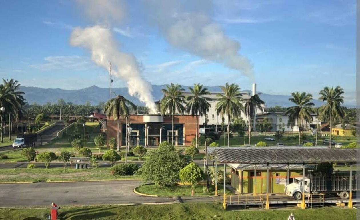 Los camiones que llegaron a dejar la fruta a la planta extractora que se dedica a la producción, transformación, almacenamiento y exportación de aceite de palma africana y aceite de almendra, tuvieron que abandonar el lugar, al observar la usurpación.