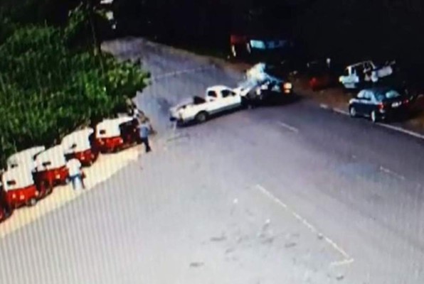 Un fatal accidente quedó registrado en la cámara de video vigilancia instalada por la municipalidad de Trinidad en la carretera N20 que de Santa Bárbara conduce a San Pedro Sula. En el video se aprecia que un pick up se mete a la carretera sin hacer el alto y entra en el carril contrario.