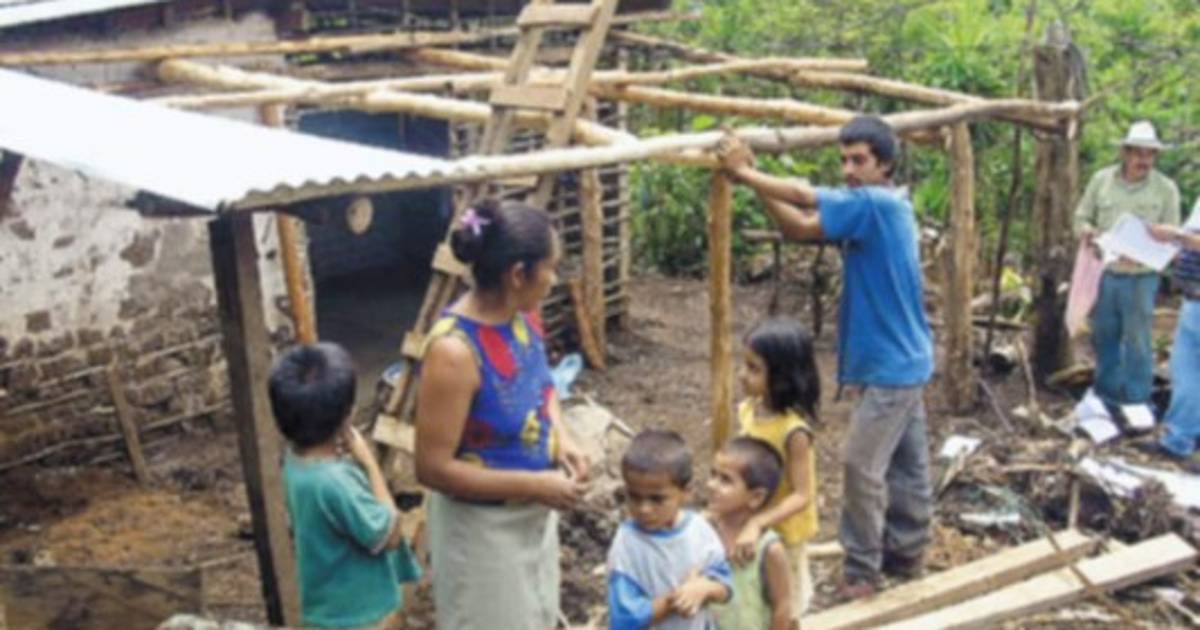 El proyecto inició hace ocho semanas y hasta la fecha a 41, de las 98 familias, les ha construido el piso y dotado de las láminas de zinc.