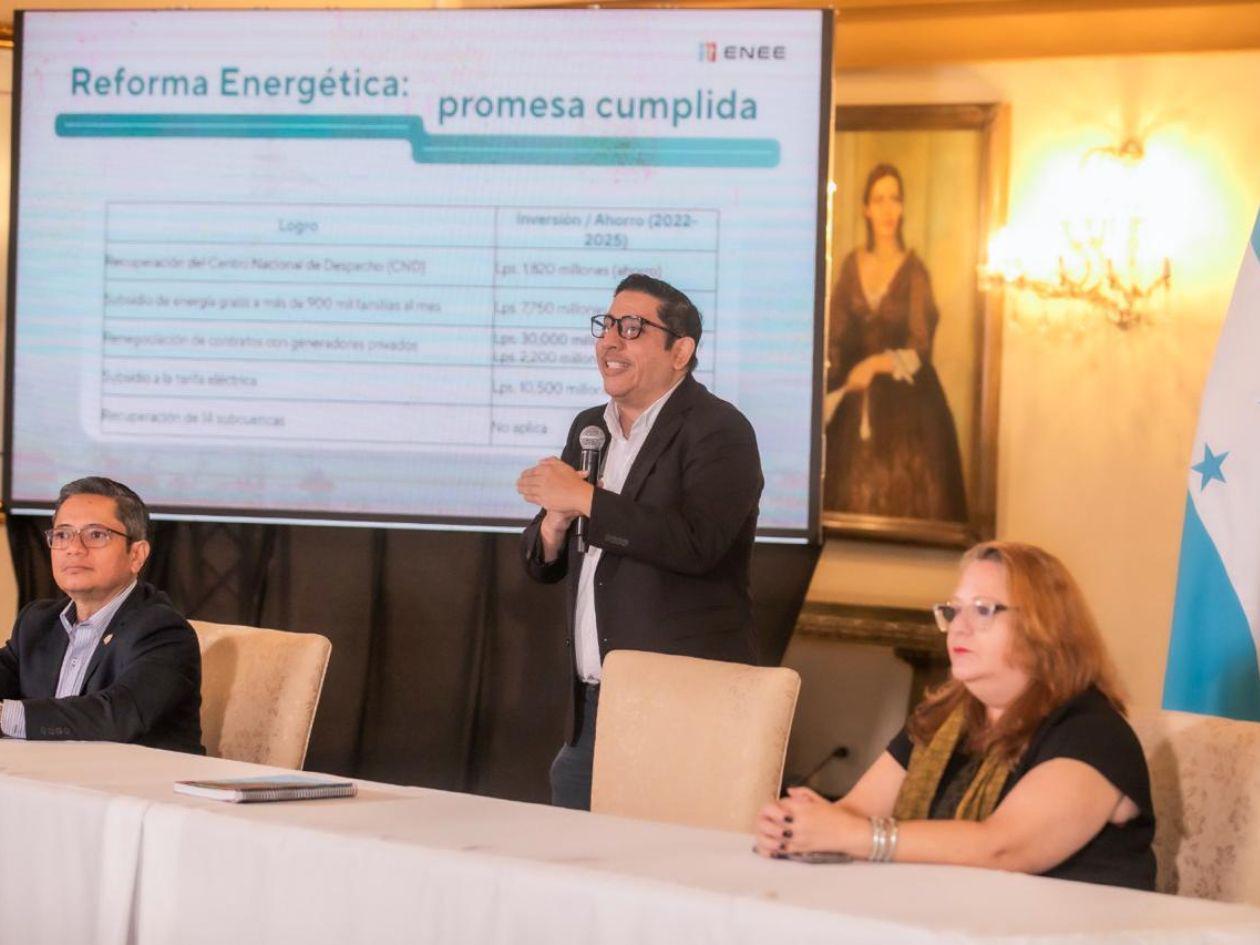 Tejada aseguró que uno de los cambios más relevantes de la ley fue la modificación en el esquema de pago a los generadores, sustituyendo el pago fijo de potencia. “Este ajuste redujo la tarifa de 10.39 a 8.78 lempiras, lo que ha representado un ahorro acumulado de 820 millones de lempiras en cuatro años”.