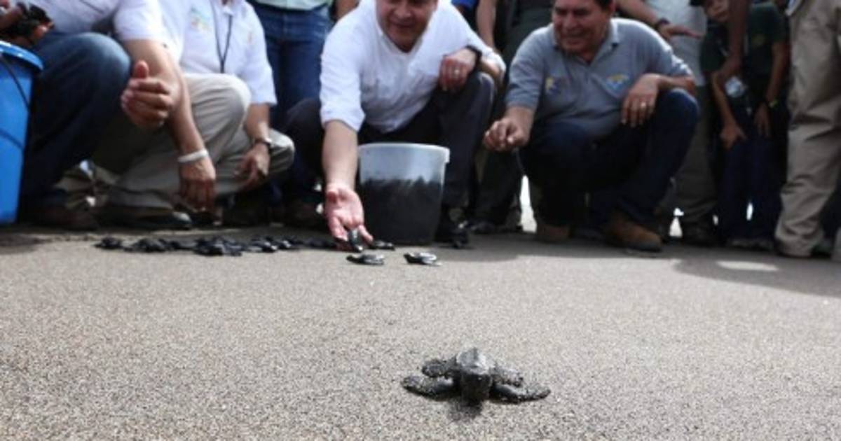 Hernández es el primer presidente hondureño que asiste a una liberación de tortugas golfinas, actividad que se viene desarrollando desde hace unos 45 años.
