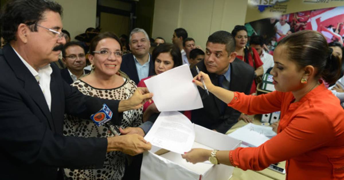 'Con respeto comparezco para interponer acción de nulidad de las elecciones practicadas el 24 de noviembre', expresa el documento que Zelaya entregó acompañado de su esposa y candidata del partido Libertad y Refundación (Libre, izquierda) Xiomara Castro a la representante del TSE, Karen Ponce.