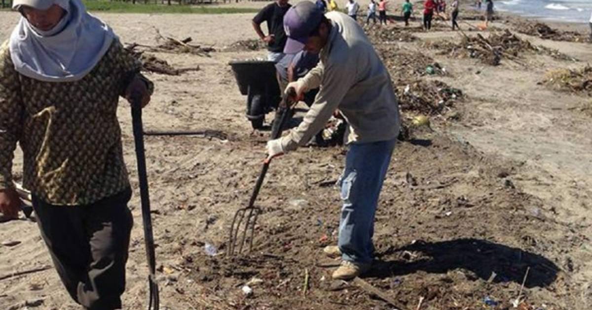 La Municipalidad con apoyo de vecinos de Tela trabajó por varias horas en la recolección de los desechos que fueron arrastrados por las olas a la orilla del sitio turístico.