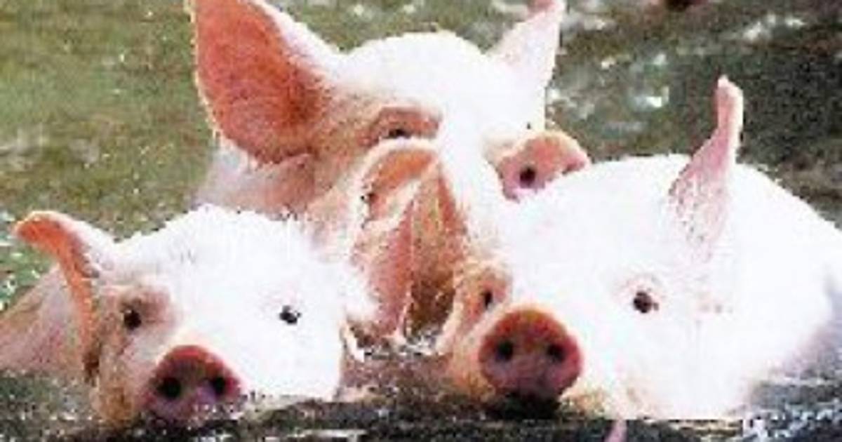 Una docena de pequeños y ágiles cerdos de Dongba, Tailandia, compiten en un juego de nado en un parque en Nanchang, al este de la provincia Jiangxi de China.