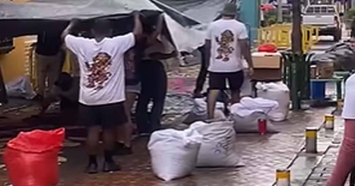 A pesar de la lluvia que comenzó a caer alrededor de las 3:00 de la tarde del Jueves Santo, los artistas que elaboran las tradicionales no detuvieron su labor. Cada calle se convirtió en un lienzo de colores y devoción, donde familias enteras trabajaban para mantener viva una tradición centenaria.