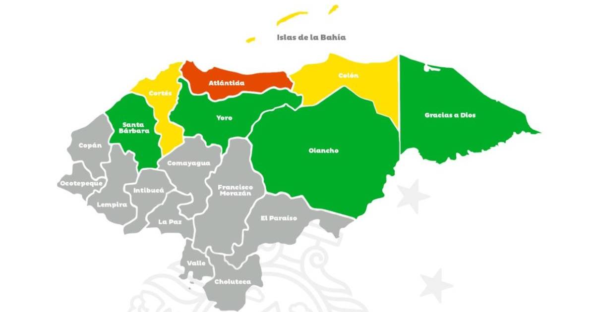 Simultáneamente, se mantiene en alerta amarilla a los departamentos de Islas de la Bahía, Cortés y Colón.