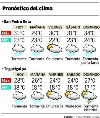 Según el Centro de Huracanes de Miami, una tormenta que se forma sobre Panamá tenía anoche 50% de posibilidades de convertirse en un fenómeno tropical, es decir, una depresión, e incluso, un ciclón. Lo mismo ocurre en el Pacífico, donde frente a las costas de El Salvador y Guatemala también hay una potencial tormenta moviendo humedad hacia los países del Triángulo Norte. De acuerdo con el pronóstico del Centro Nacional de Estudios Atmosféricos, Oceanográficos y Sísmicos (Cenaos), se mantienen las condiciones lluviosas en la mayor parte del territorio nacional. “Estas precipitaciones pudieran ser localmente intensas en las zonas altas y montañosas. En las regiones central-sur y suroccidental se concentran las mayores probabilidades de chubascos moderados a fuertes acompañados de actividad eléctrica”. Debido a las crecidas de ríos, como el Ulúa, Chamelecón y varias quebradas y afluentes de menor envergadura, la Comisión Permanente de Contingencias (Copeco) mantiene permanente vigilancia en las regiones más vulnerables. Piden a la población alejarse de zonas de riesgo cuando llueva con intensidad. Según el pronóstico extendido seguirá lloviendo el resto de la semana y en varias regiones se esperan tormentas con actividad eléctrica. Piden estar atentos a posibles deslizamientos por la saturación de los suelos, especialmente en zonas montañosas. |
