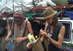 Ellos se hacen llamar la comunidad Arcoíris y su travesía sin rumbo inició en Brasil, cuando en dos microbuses Volkswagen T2, populares por ser usados por los hippies, salieron a recorrer América, pasando de país en país y viviendo del dinero que la gente les da cuando estos nómadas ofrecen sus presentaciones callejeras.