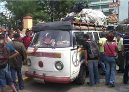 Finalmente, los extravagantes personajes se subieron a su microbús para irse de San Pedro Sula y reanudar su viaje a un destino que realmente ni ellos conocen.