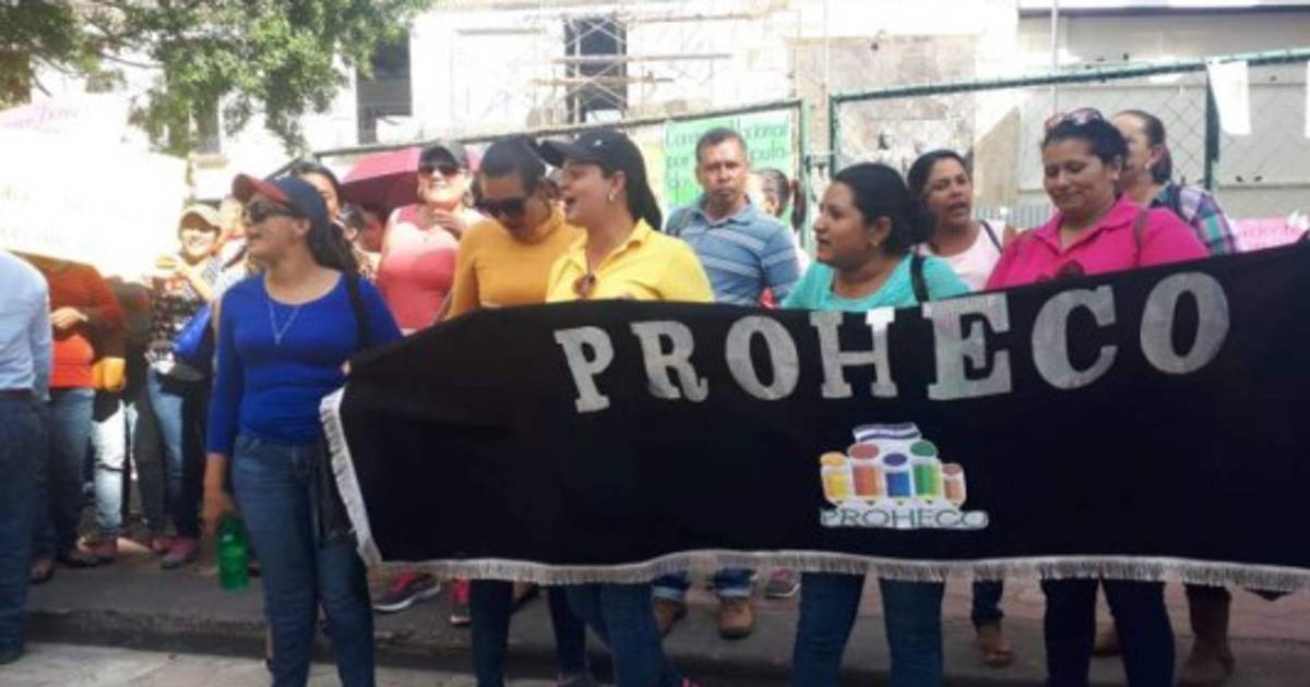 Docentes hondureños que brindan sus servicios a través del Programa Hondureño de Educación Comunitaria ( Proheco) protestaron este martes en los bajos del Congreso Nacional de Honduras.