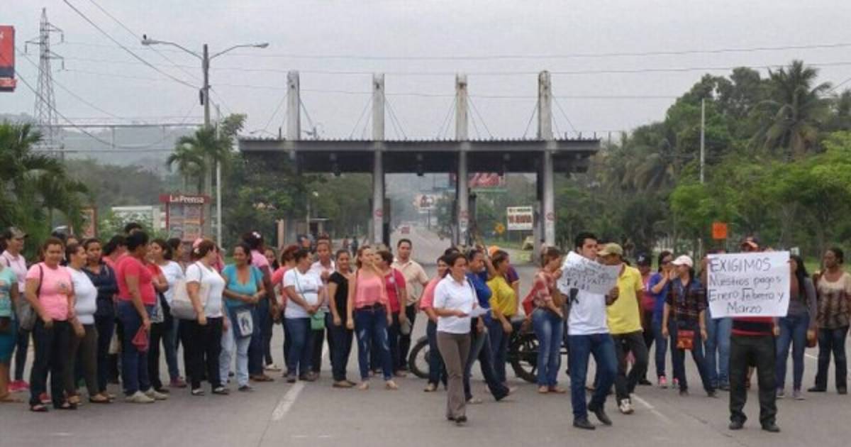 Un grupo de docentes del Programa Hondureño de Educación Comunitaria (Proheco) se instaló este lunes en el bulevar del norte de San Pedro Sula para pedir al Gobierno les pague sus salarios.