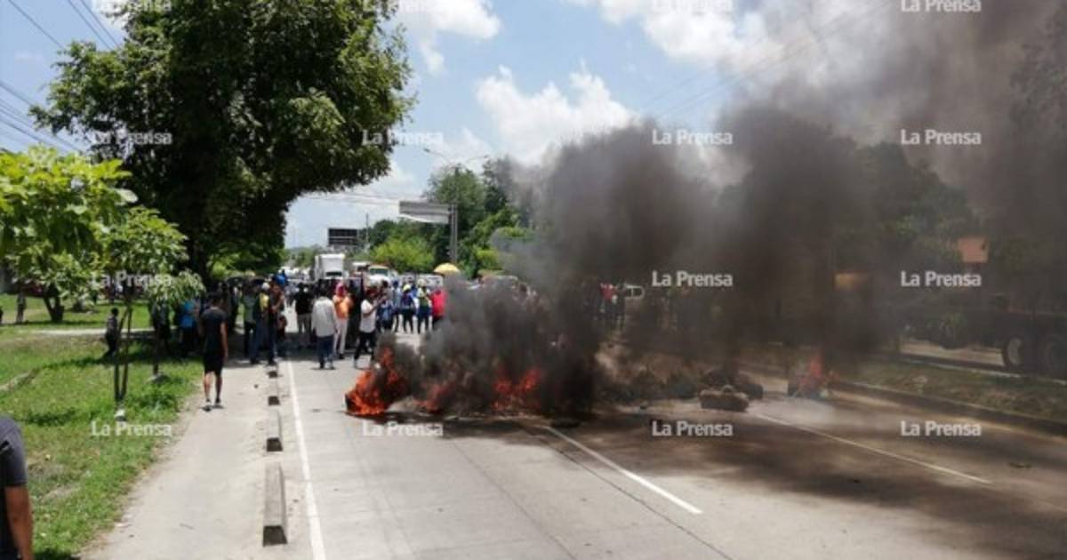 Entrando de Choloma a San Pedro Sula, pusieron un árbol, llantas y piedras como una forma de presión para no dejar pasar a nadie, también tuvieron música como una manera animada mientras permanecían de pie.