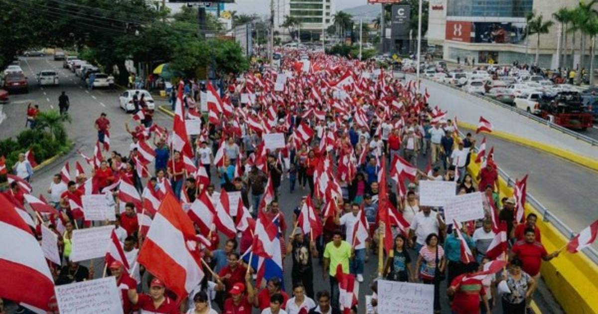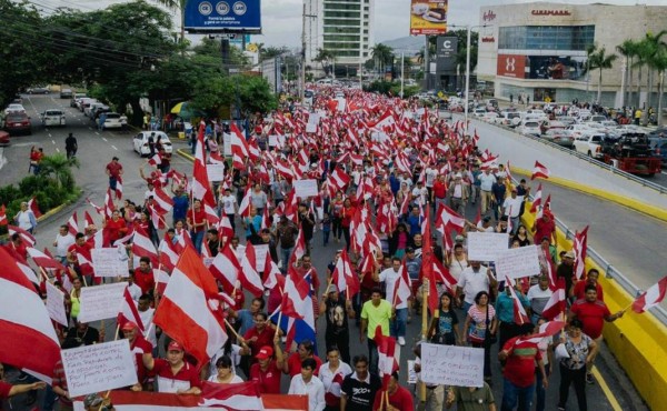 Centenares de militantes de los partidos Liberal, Libre, Pinu y el próximo a inscribirse, Salvador de Honduras, salieron a las principales calles de San Pedro Sula, al norte de Honduras, este sábado para realizar una marcha pacífica de protesta.