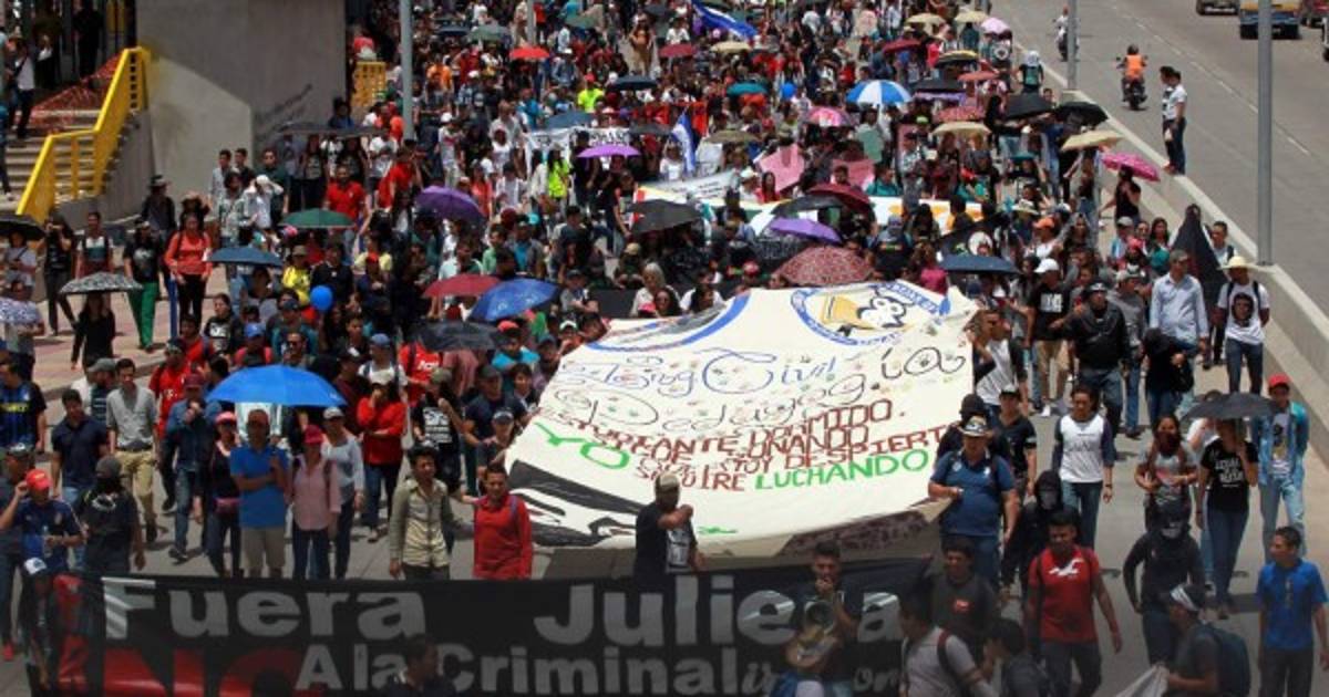 A eso de la 1:30 pm, las personas que asistieron al concierto se aglomeraron en el bulevar Suyapa y emprendieron la caminata hasta concluir en el Congreso Nacional para entregar en ese poder del Estado una propuesta para integrar una comisión interventora.