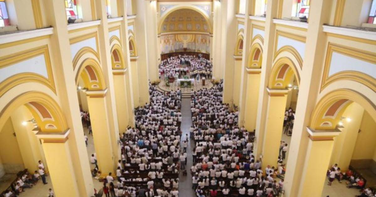 Feligreses escuchando el mensaje en la parroquia San Pedr Apóstol de San Pedro Sula.