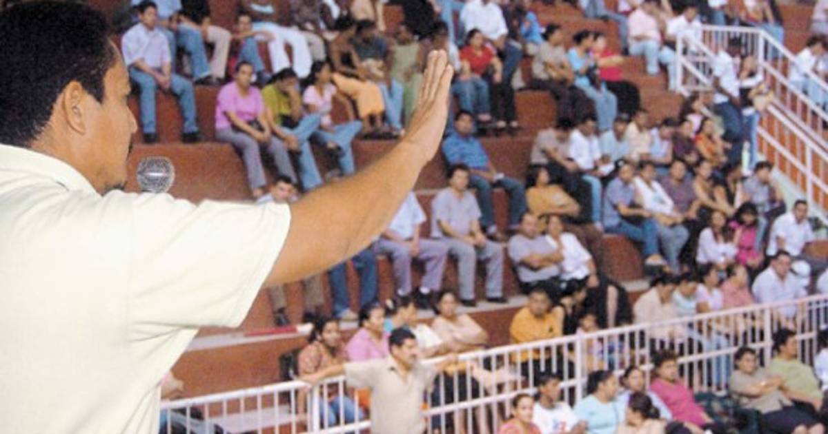 Un grupo de unos 15 alumnos del tercer año de ciclo común de la jornada vespertina del Centro de Educación Básica Yankel Rosenthal, ubicado en la colonia Sandoval Sorto, estaba en las gradas del gimnasio con carteles y aplaudiendo cada vez que un dirigente hablaba.