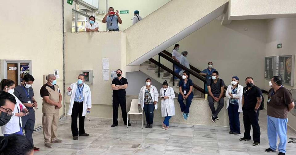 Hoy los médicos están reunidos en el lobby de Catarino y se han detenido para hacer una asamblea informativa. Las labores han cesado por 12 horas y retornarán por la tarde.