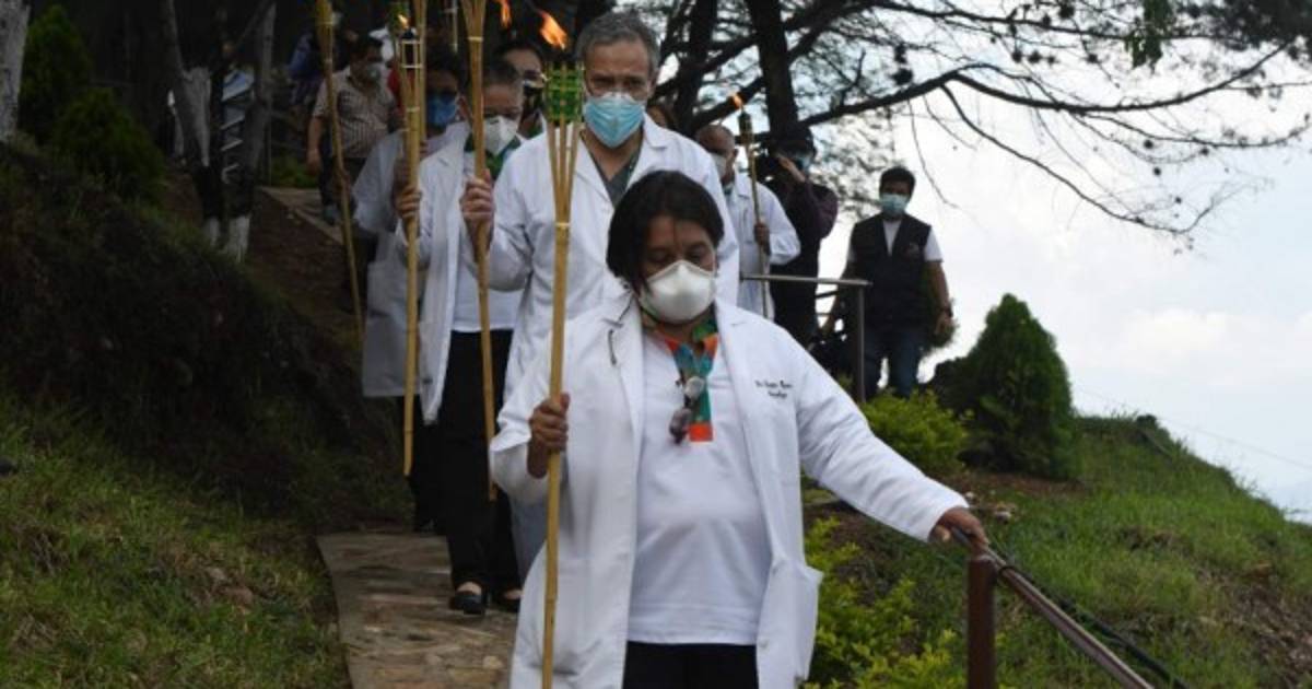 Directivos del Colegio Médico de Honduras (CMH) rindieron homenaje a los miembros del gremio fallecidos por el nuevo coronavirus, en una emotiva ceremonia celebrada en la sede de ese organismo de 10.000 afiliados en el sur de Tegucigalpa.