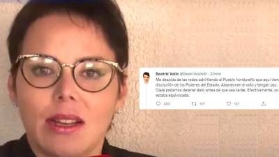 LEA: Beatriz Valle se “despide” de redes sociales y lanza advertencia a Xiomara Castro y Manuel Zelaya