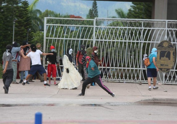 “Personas con la cara tapada han generado enormes daños a la Universidad durante estas tomas, por eso ya hicimos unas 17 denuncias contra ellos. Mañana (hoy) se darán a conocer los detalles de cuánto es el perjuicio económico contra la Unah”, aseguró.